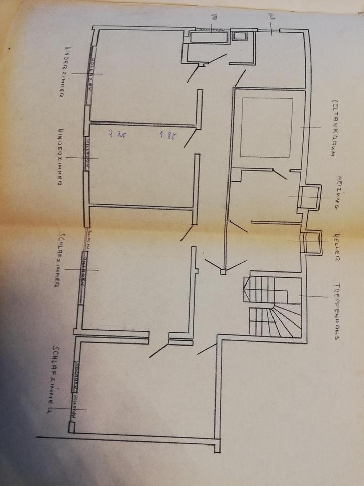 Mit einigen einfachen Umbaumaßnahmen kann das Untergeschoss in eine Einliegerwohnung umgewandelt werden. In den beiden Kinderzimmern gibt es jeweils einen Wasser- un Abwasseranschluss, so dass dem Einbau einer Küche in einem der beiden Zimmer nichts im Wege steht.