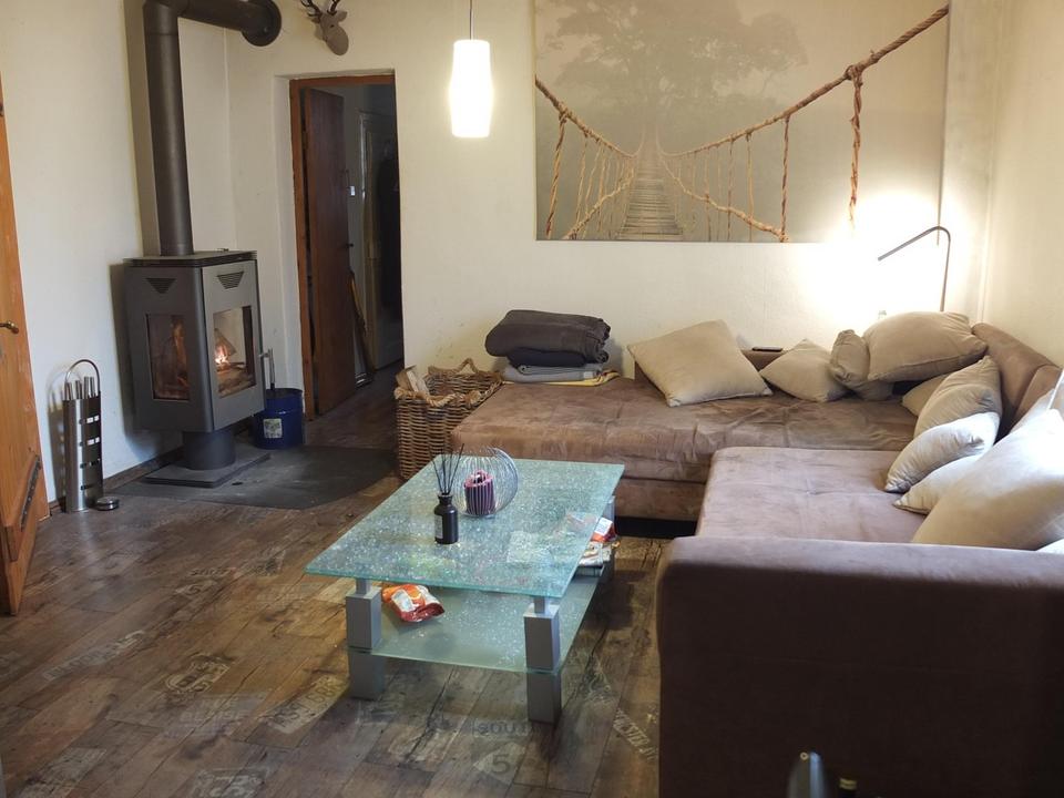 Festbrennstoffofen (Dreiseiten-Kaminofen): 2010 installiert, bietet eine gemütliche Wärmequelle und ein einladendes Ambiente.