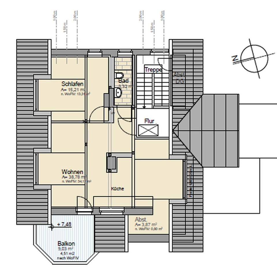 Die Wohnung liegt im Dachgeschoss eines 4-Familienhauses (2. OG) und hat eine Fläche von 70 qm (nach Wohnflächenverordnung 56 qm). Die herrliche Dachterrasse von 9 qm bietet einen direkten Blick auf das Hermannsdenkmal und den Teutoburger Wald.