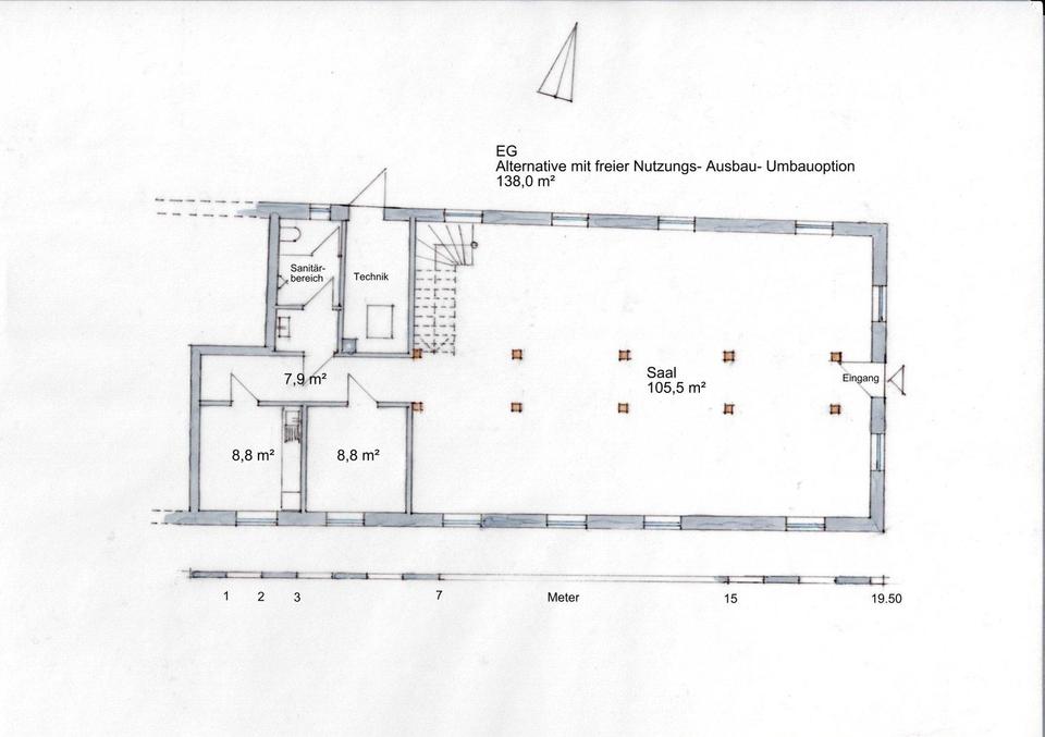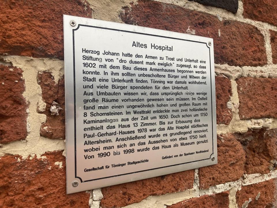 Vielfältige Nutzungsmöglichkeiten bietet das 1602 erbaute hochrangige Baukulturgut im charmanten, historischen und repräsentativen Ambiente. Es handelt sich hier um das älteste Haus der Stadt Tönning. 1988 wurde das Gebäude kernsaniert und dabei in einen annähernden Neubauzustand versetzt. Anschließend wurde das „Alte Hospital“ als Museum genutzt, ab 1999 als Architekturbüro. Dies ist auch der derzeitige Ist-Zustand. Das Erdgeschoß zeigt sich durch die vielen großen Fenster tageslichtdurchflutet, die üppige Raumhöhe sorgt für ein großzügiges Raumgefühl. Die originalen Deckenbalken und historischen Holzständer mit breiten Deckendielen geben in Verbindung mit dem Ziegelpflaster- und teilweise Holzdielenboden ein warmes und elegantes Ambiente. Derzeit sind im größten Bereich des Erdgeschosses reversible Leichtbau- und Glaswände eingesetzt. Diese können rückstandslos entfernt werden und ermöglichen weitere vielfältige Nutzungsmöglichkeiten. Der imposante Dachraum ist bis unter den First offen gestaltet, das originale Gebälk ist komplett sichtbar. Die Dachschrägen sind nach außen mit massiven Holzdielen verkleidet. Alle Fenster und Türen wurden 1988 sehr hochwertig ausgeführt und befinden sich im guten Zustand. Baurechtlich (Baugenehmigung liegt vor) ist das Haus Wohnraum (Wohnfläche 138m² + Nutzfläche 125m²), kann aber auch gewerblich genutzt werden. Bei dem hier angebotenen Gebäudeteil handelt es sich um den Ostflügel des „Alten Hospitals von 1602“, die WEG Teilung liegt vor. Zum Haus gehört ein Grundstücksanteil von 736/2 m², ein weiterer Grundstücksanteil (Bauland) kann dazu erworben werden. Weitere und ausführliche Informationen erhalten Sie gerne auf Anfrage vom Verkäufer. Privatverkauf – keine Courtage!
