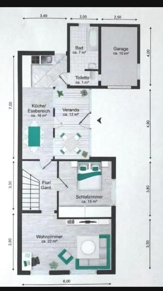 Das Haus hat 2 Etagen und empfängt Sie und Ihre Gäste in einer wohnlichen Veranda. Im Erdgeschoss befinden sich zwei Wohnräume, Duschbad, Küche mit Essbereich, Gastherme und angegliedertem Vorratskeller mit Wasser- und Abwasseranschluss. Im Obergeschoss steht Ihnen ein weiterer sonnendurchfluteter Wohnraum, sowie eine kleines Zimmer zur Verfügung, welches momentan als Nähzimmer dient. Die doppelverglasten Kunststofffenster sind mit Rollläden ausgestattet. Ein hübscher kleiner Teich im Vorgarten, umrandet von einer prächtigen Rosenrabatte, ziehen die Blicke von Spaziergängern auf sich. Ein großes Carport und eine Garage, die als Werkstatt genutzt wird und die Brunnenpumpe zur kostengünstigen Gartenbewässerung beherbergt, schließen sich an. Im hinteren Teil des Grundstücks befand sich früher der Nutzgarten, sogar auf dem Trockenplatz wurden Kartoffeln angebaut. Später entstanden hier Grünflächen, und ein Pool und eine Tischtennisplatte wurden aufgestellt. Jetzt kümmert sich Robby, der Rasenroboter, um die große Rasenfläche. Nebengelass und überdachte Flächen sind in die Jahre gekommen und mit geringem Aufwand schnell entfernt. Hier können Sie Ihrer Phantasie freien Lauf lassen und Ihr Grundstück nach Ihren Wünschen gestalten bzw. nutzen.