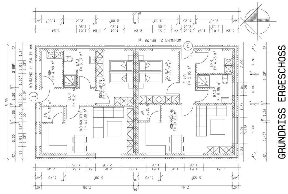 Der Kauf der Immobilie ist für den Käufer provisionsfrei. Der Angebotspreis von 255.000 € bezieht sich auf die Einheit Nr. 2 (hinten, größerer Gartenanteil, 481 qm Grundstück). Die vordere Einheit Nr. 1 ist bereits verkauft.