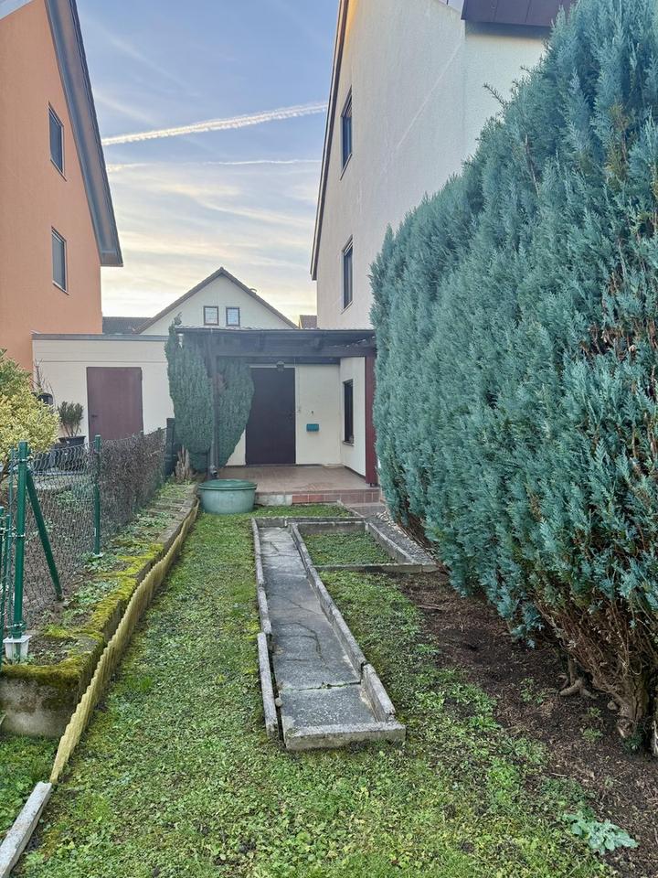 Zur Doppelhaushälfte gehört eine Garage mit Stellplatz, Vorgarten, Terrasse mit Gartenanlage, überdachte 2. Terrasse .