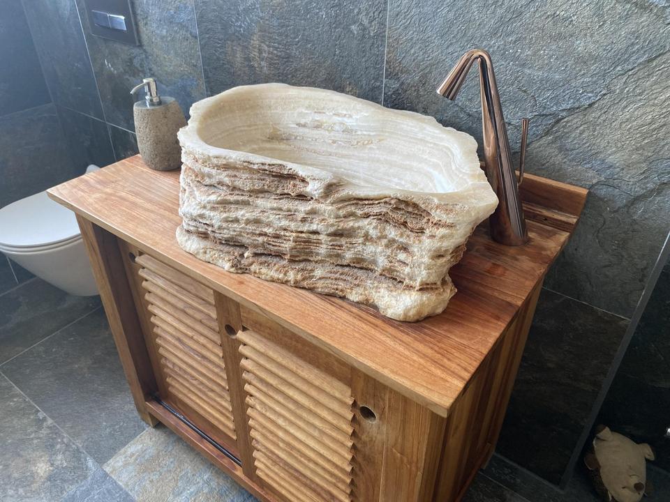 Das Haus wurde modern und geschmackvoll ausgestattet mit hochwertigen Sanitäreinrichtungen, Fussbodenheizung auf jeder Etage, Sandsteintapete in Bad und WC, hochwertige italienische Armaturen Gessi Cono (Bad, WC).