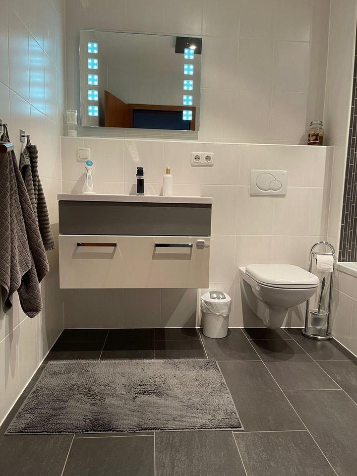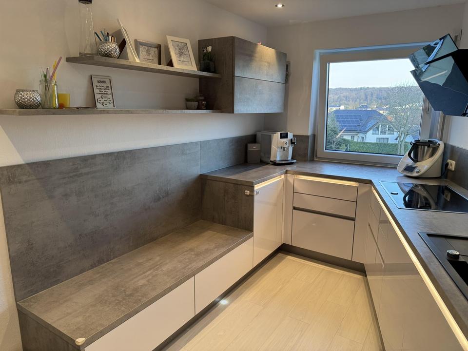 Die Wohnung verfügt über eine gepflegte und zeitgemäße Ausstattung. Die moderne Einbauküche ( Fa. Nolte ) ist sehr gut erhalten. Die Fenster wurden im Jahr 2024 erneuert. Neue Kunststofffenster ( Fa. Ziegler ) wurden im gesamten Haus getauscht. 2023 wurden alle Hauseigangstüren in der Wohnanlage durch neue Eingangstüren ersetzt. 2022 wurden für die gesamte Wohnanlage neue Heizkessel ( Fa. Mack ) installiert.