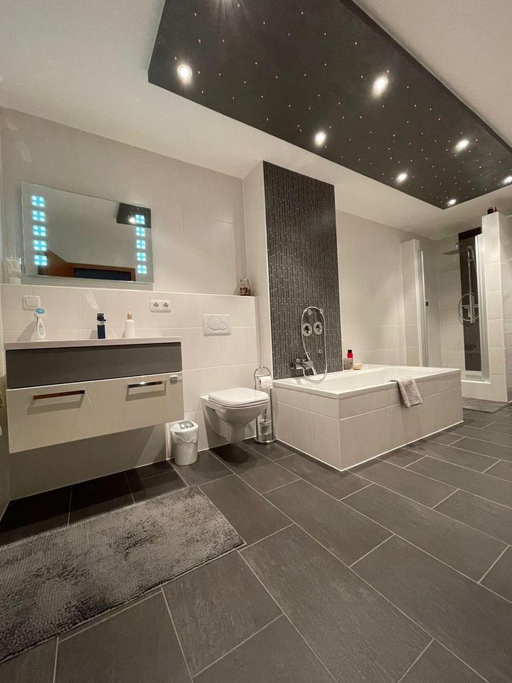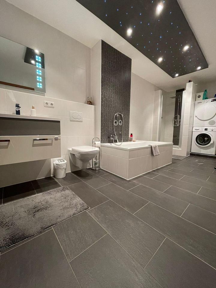 Balkon, Keller, Vollbad, Laminat, Fliesen