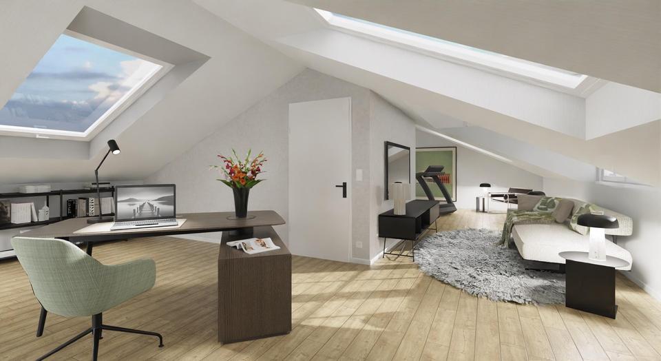 Das Dachgeschoss stellt eine zusätzliche Wohnfläche von ca. 40 m² dar, und ist vielseitig nutzbar – sei es als Arbeitszimmer, Hobbyraum oder weiteres Schlafzimmer. Die flexible Gestaltungsmöglichkeit lässt Raum für Ihre individuellen Wünsche und Bedürfnisse. Sollte ein Bad im DG gewünscht sein, ist dies problemlos gegen Aufpreis möglich. Alle Anschlüsse für einen späteren Bad Einbau hingegen, sind im Kaufpreis enthalten.