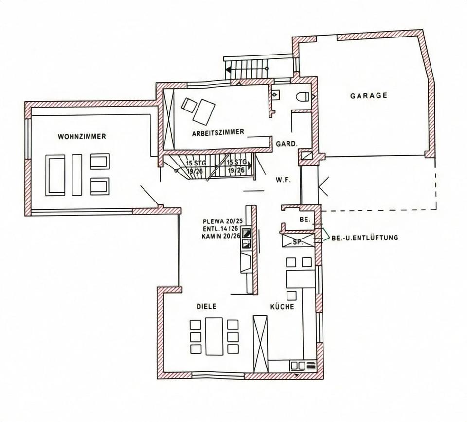 • Wäscheabwurfschacht direkt vom Obergeschoss und Erdgeschoss zum Waschkeller