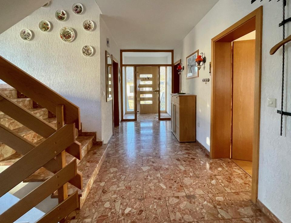 Einfamilienhaus in bester Wohnlage mit ca. 175 m2 Wohnfläche. Keine Maklerprovision, Kauf direkt vom Eigentümer. Kurzfristig bezugsfertig. Weiterer Wohnraum kann durch Ausbau des großen Dachgeschosses geschaffen werden. Der Zugang zum Erdgeschoss erfolgt über eine Außentreppe und einen Windfang. Das Erdgeschoss mit großzügigem Wohnraum inkl. anliegender Küche öffnet sich nach Westen zum angrenzenden Garten. Über einen Balkon mit Treppe ist die vorgelagerte Terrasse unmittelbar vom Wohnbereich erreichbar. Die Terrasse liegt direkt am großen, ebenen Garten. Küche und Wohnzimmer verfügen über große Fenster mit Fernblick. Ein großzügig bemessenes Schlafzimmer komplettiert neben einem Arbeitszimmer und einem Badezimmer das Erdgeschoss. Über ein zum breiten Flur geöffnetes Treppenhaus erreicht man die Wohn- und Nutzräume im Tiefparterre. Drei schön dimensionierte Zimmer mit Fenster zur Südseite und ein Badezimmer befinden sich dort. Auf der Nordseite finden sich Kellerräume und Waschküche.
