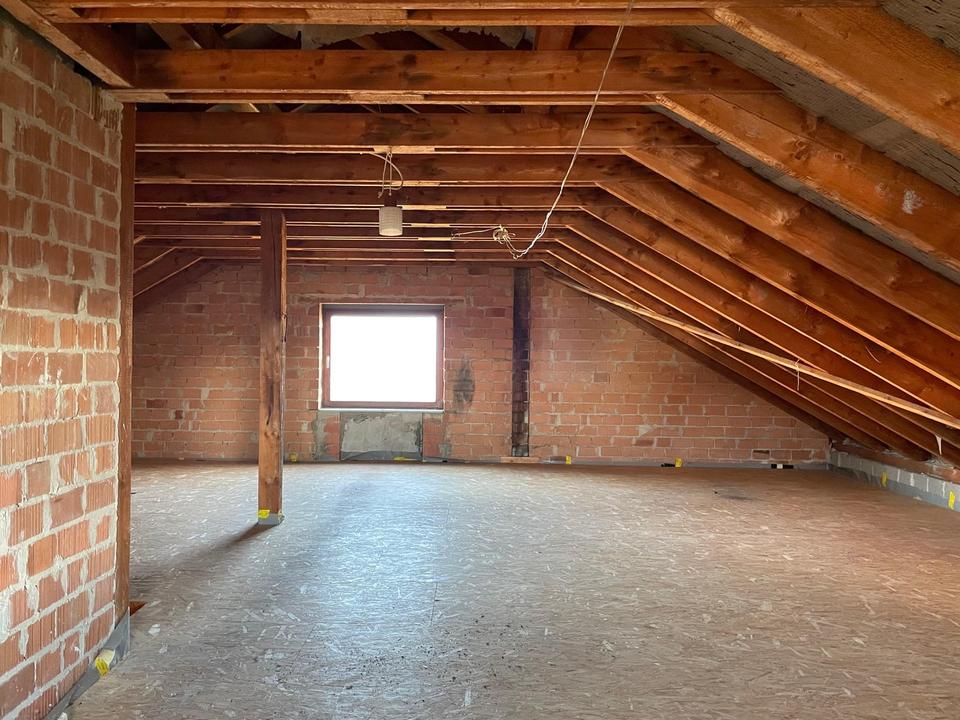 Das Dachgeschoss ist bereits über das Treppenhaus bestens an den Wohnbereich angeschlossen. Der nahezu stützenfreie Dachraum mit einer lichten Höhe von ca. 2,60 m bis zu den Kehlbalken, bietet Ausbaupotential für ein zusätzliches Wohngeschoss.