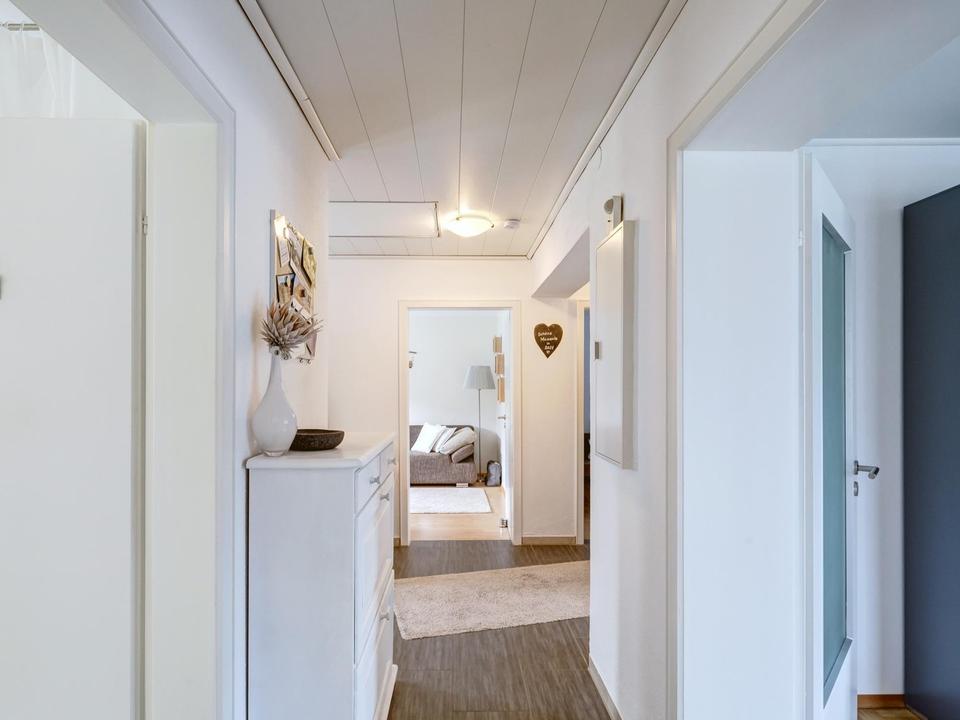 Vorhanden sind unter anderem z.T, Eichen-Parkett, Fliesen-, und Steinzeug sowie Vinyl bzw. Laminatböden. Kunststofffenster mit einer 2-fach Schüco-Wärmedämmverglasung. Eine modern ausgestattete neuwertige Küche. Warmwasser-Solaranlage zzgl. einer 6 kw/h PV-Anlage. Ein Vollwärmeschutz sowie eine Dachspeicherdämmung ergänzen die energetischen Maßnahmen. Die vorhanden Öl-Heizung wurde regelmäßig gewartet und beinhaltet einen Warmwasserspeicher. Ein im Wohnzimmer befindlicher Schwedenofen ist an einen Edelstahlkamin angeschlossen, welcher auf Wunsch eine angenehme Wärme im Winter abgibt. Es besteht laut aktuellem Energieausweis für das Objekt eine Einstufung in der Klasse C.
