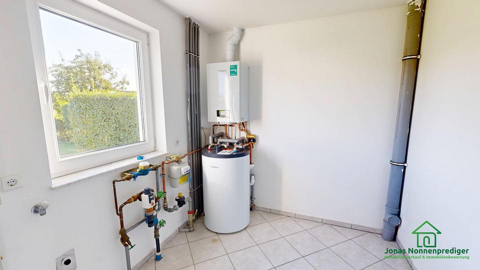 Das Haus ist nicht unterkellert, verfügt jedoch über eine zusätzliche Nutzfläche von ca. 15 m². Auf dem Grundstück stehen zwei freie Stellplätze sowie ein Carport zur Verfügung. Die Sanitärbereiche sind zweckmäßig ausgestattet: Im Erdgeschoss befindet sich ein Duschbad, im Dachgeschoss ein Badezimmer mit Badewanne.