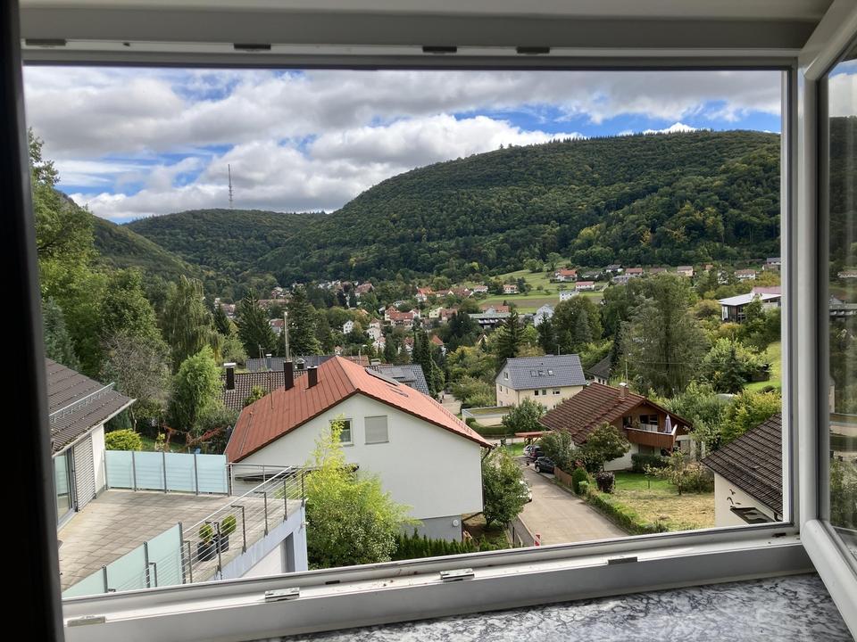 Vom Haus und vom Garten aus bietet sich ein weitläufiger Ausblick zum Rosenstein, zum gegenüberliegenden bewaldeten Hochberg und über einen Teil der Stadt Heubach.