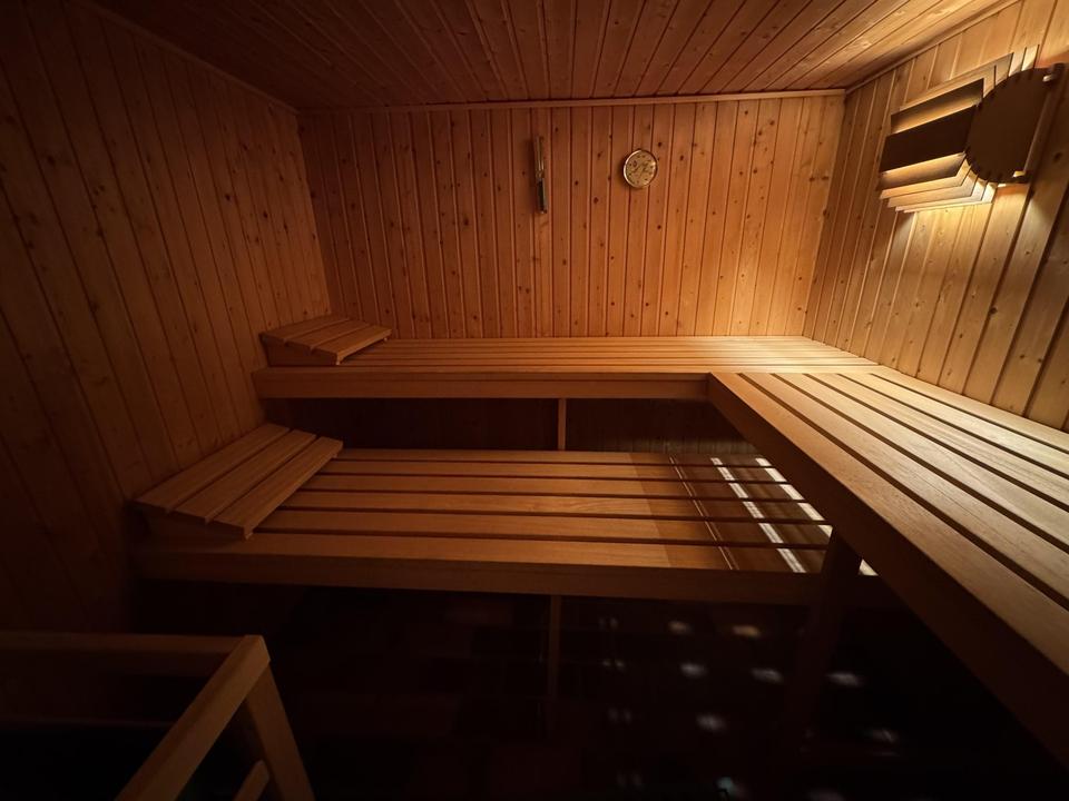Balkon, Terrasse, Garten, Keller, Duschbad, Sauna, Einbauküche, Gäste-WC, Kamin, Fliesen