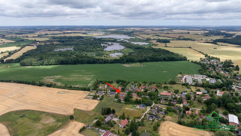 Das Haus befindet sich in der ruhigen Dorfstraße von Zickhusen, umgeben von gepflegten Einfamilienhäusern und Gärten. Die nähere Umgebung ist geprägt von viel Grün und ländlichem Charme – ideal für Familien oder Naturliebhaber. Kindergarten, Schule, Einkaufsmöglichkeiten und ärztliche Versorgung finden sich im Umkreis von etwa 5 bis 15 Kilometern, insbesondere in Lübstorf und Schwerin. Der nächstgelegene Bahnhof ist in Lübstorf und in wenigen Minuten erreichbar.