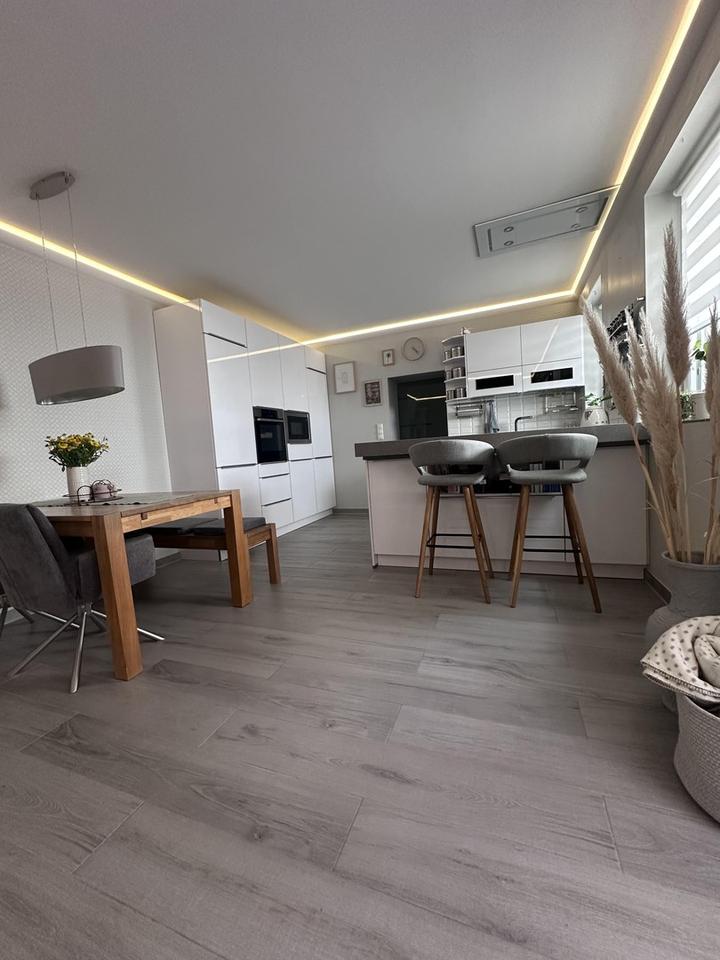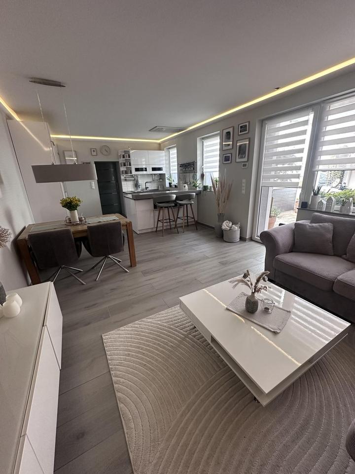 – Offene Wohn-Essküche mit exklusiver Nolte-Einbauküche (weiß) und Steinarbeitsplatte