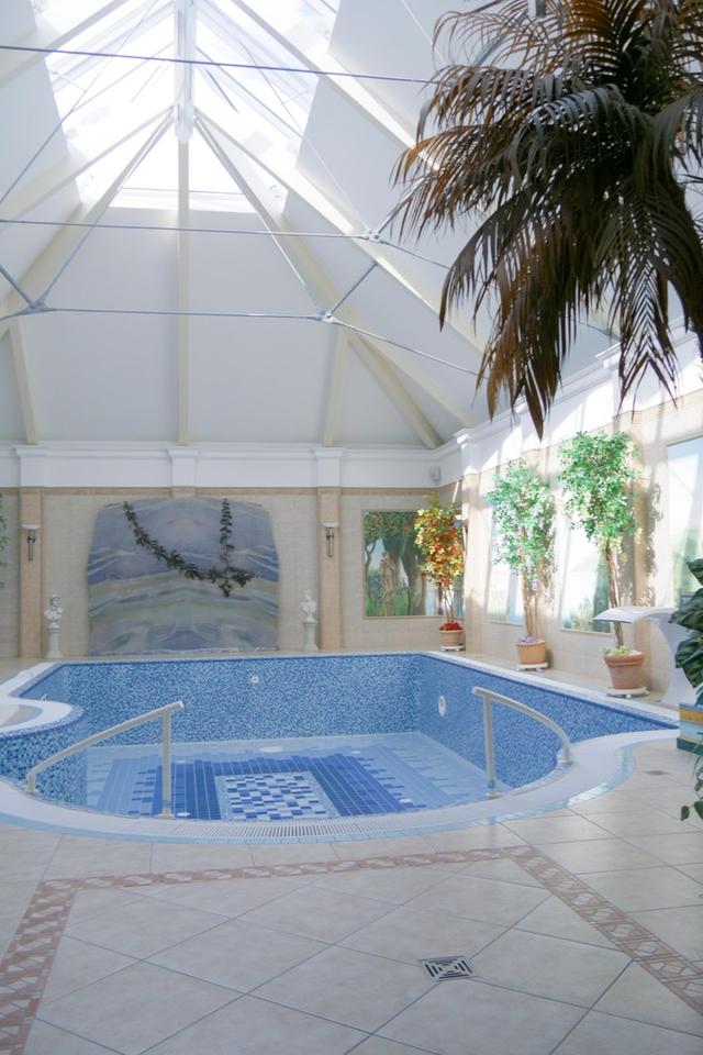 Angeschlossen an das Hauptgebäude ist der Wellnessbereich. An einer großzügigen Bar in dem davor gelagerten HiFi-Raum, können Sie Ihren Lieblingsfilm anschauen. Wählen Sie dann, ob Sie Ihren Feierabend im Saunabereich (Nass oder Trocken) oder im großzügigen Schwimmbad verbringen möchten. Natürlich steht Ihnen zum Bräunen oder Durchwärmen ein separater Bereich zur Verfügung.