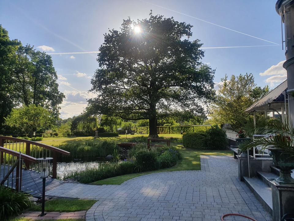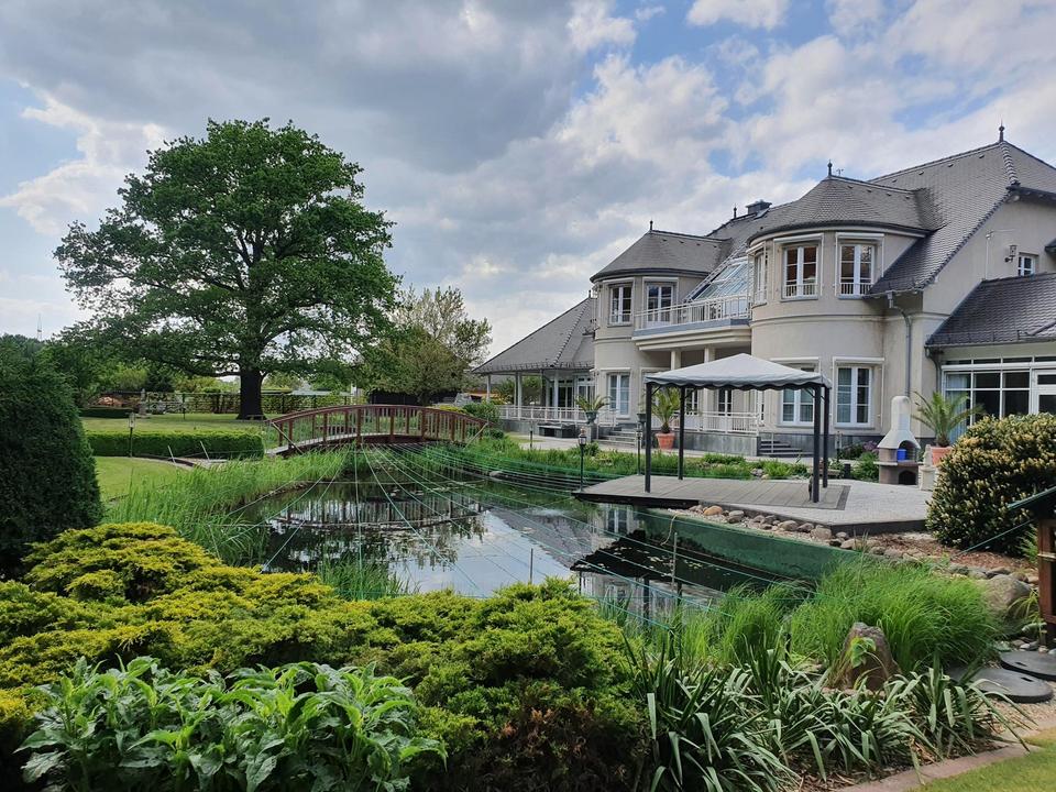 Die großzügige Vorgarteneinfahrt, der strukturierte Garten mit einem Fischteich und einem angrenzenden Waldpark, umschließen das Zwei-Familienhaus mit seinem Wellnessbereich und Nebengelass.