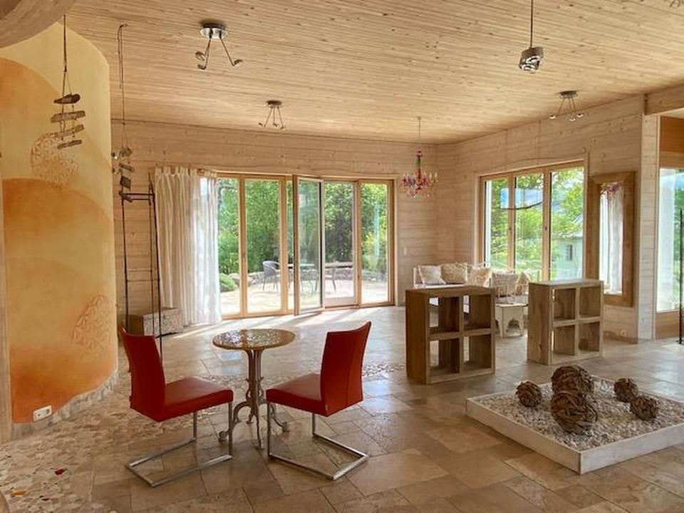 helle und freundliche Holzbauweise (Holzhaus-Architektenhaus), innen teilweise runde attraktive Holz-Wände,