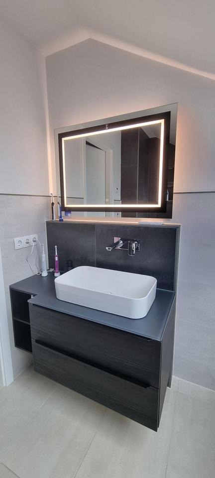 Angebunden an den Eingangsbereich befindet sich das hochwertig ausgestattete Gästebad sowie der Essbereich, von wo man durch die 3,25 m hohen und 3-fach verglasten Fenster einen tollen Blick auf den Garten hat. Durch eine Hanglage kann dieser tolle Ausblick genossen werden. Die Decke ist mit Spots und indirekter Beleuchtung ausgestattet. Alle Treppenstufen sind aus Eichenholz gefertigt und wurden 2020 installiert. Der Keller besteht aus einem 21 qm großen Vorraum, sowie aus einem zweiten Raum, welcher 9 qm misst und u.a. die Gaszentralheizung beherbergt. Im EG befindet sich auch die moderne Küche, (Induktionskochfeld, beleuchtete Schubfächer)