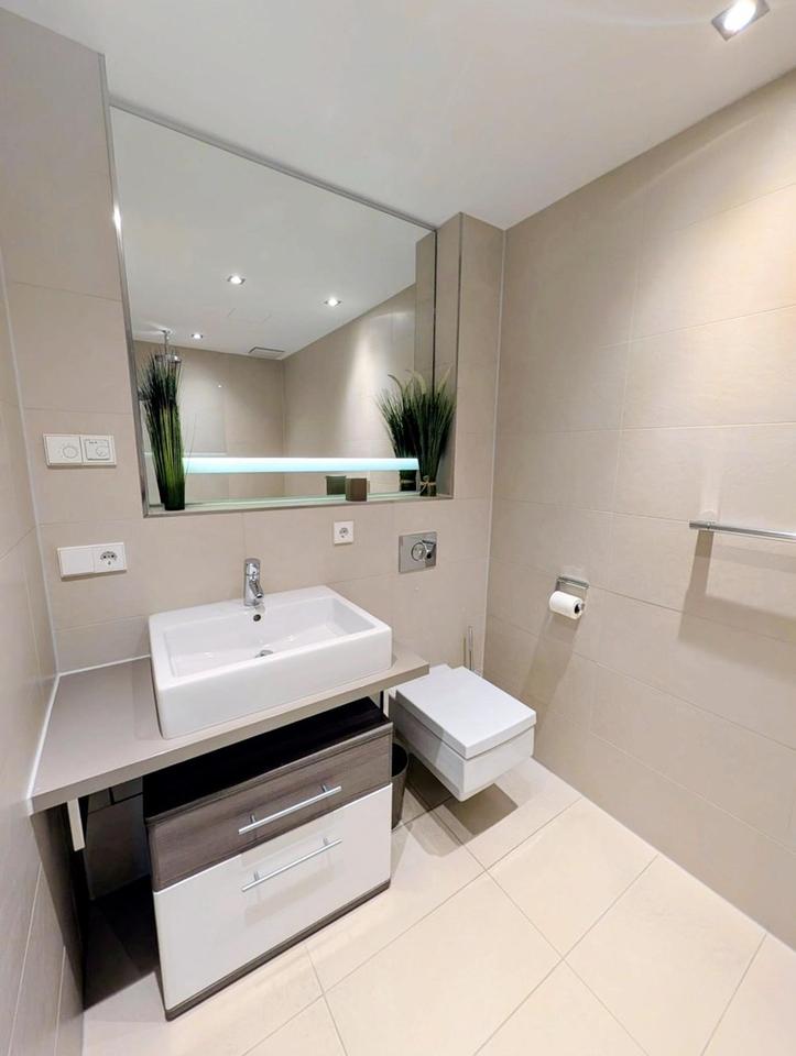 •Großzügiges Bad mit bodentiefer Dusche und italienischen Feinsteinzeug Fliesen