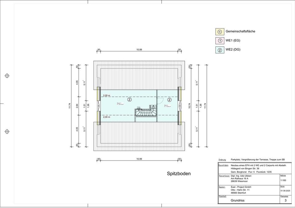 Durch einen gesonderten Raum erreichen Sie eine Treppe, welche Sie zum Zugang in das Dachgeschoss nutzen können. Hier befinden sich noch 2 Zimmer. Ein Zimmer kann optimal als Büro genutzt werden und ein Zimmer hat mit einer Wohnfläche von über 24qm alle verschiedenen Nutzungsmöglichkeiten (Galerie, Schlafzimmer, Kinderzimmer usw.).