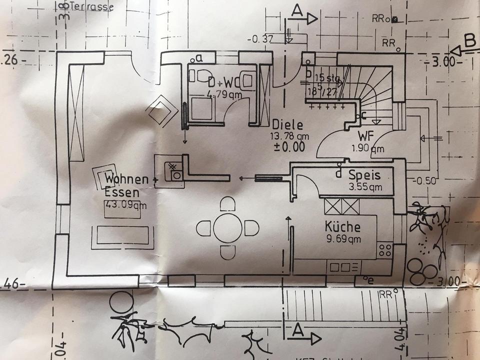 Terrasse, Garten, Keller, Vollbad, Duschbad, Einbauküche, Gäste-WC, Kamin, Fliesen