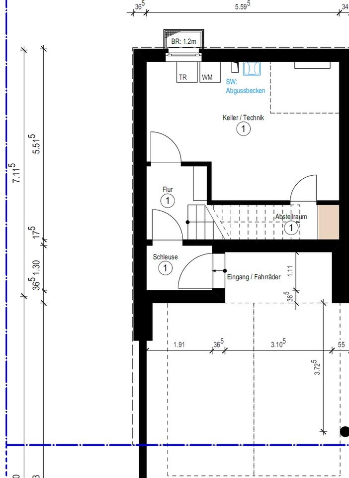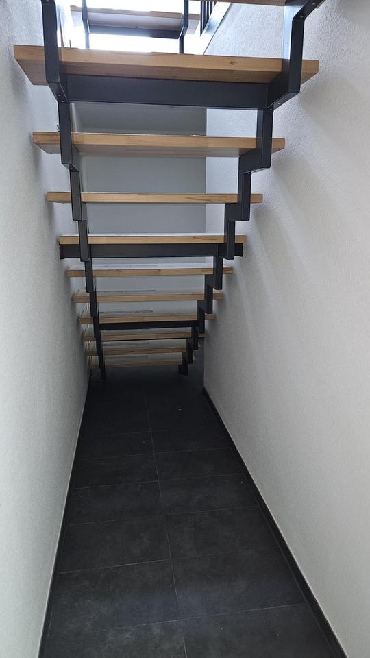 – Das Untergeschoss: Ein großzügiger Kellerraum bietet Ihnen den idealen Rahmen für eine moderne, funktionale Waschküche und eine eigene Werkstatt. Alle Anschlüsse sind bereits optimal vorbereitet. Unter der Treppe befindet sich ein praktischer Abstellraum, der perfekt für Vorräte, Haushaltsgeräte oder Koffer genutzt werden kann.