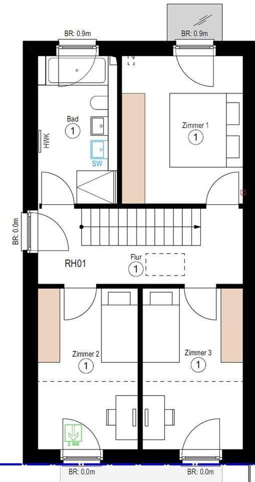 – Das Obergeschoss: Hier finden Sie das Master-Bedroom (Norden) sowie zwei helle Zimmer auf der Südseite – ideal als Kinderzimmer oder Büro. Das große Master-Bad lässt mit Dusche, Badewanne und Tageslicht keine Wünsche offen.
