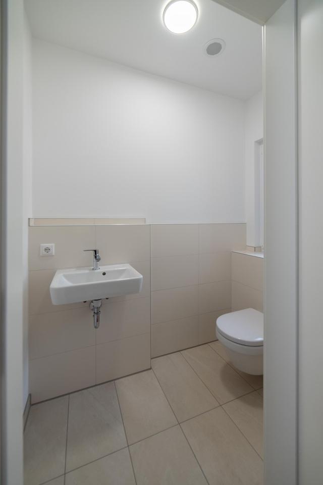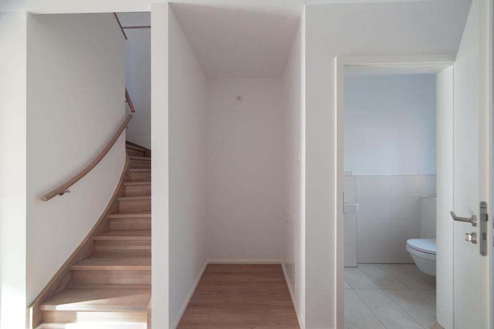 Sie betreten das Haus durch einen separaten Eingang, im EG befindet sich ausreichend Platz für eine Garderobe, sowie für Kinderwagen. Ein kleiner Technikraum und ein großer Raum unter der Treppe bieten Abstellplatz. Im Eingangsbereich gibt es ein Gäste- WC.