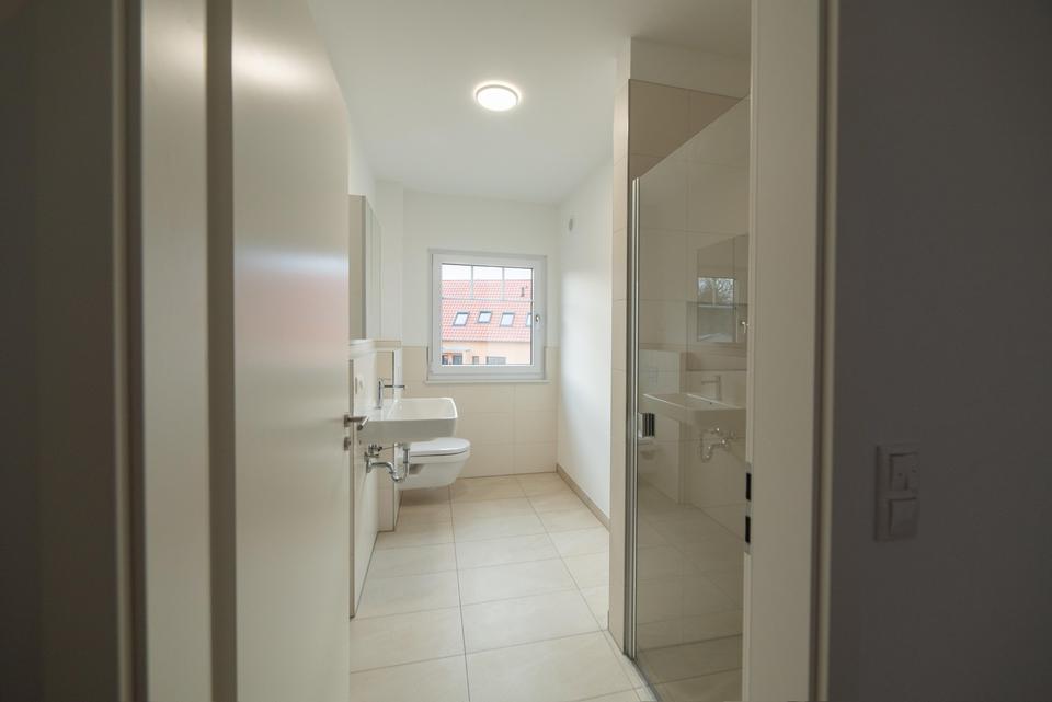 Alle Eingänge, Duschen und Terrassen sind barrierearm zugänglich, alle Türen entsprechend breit.