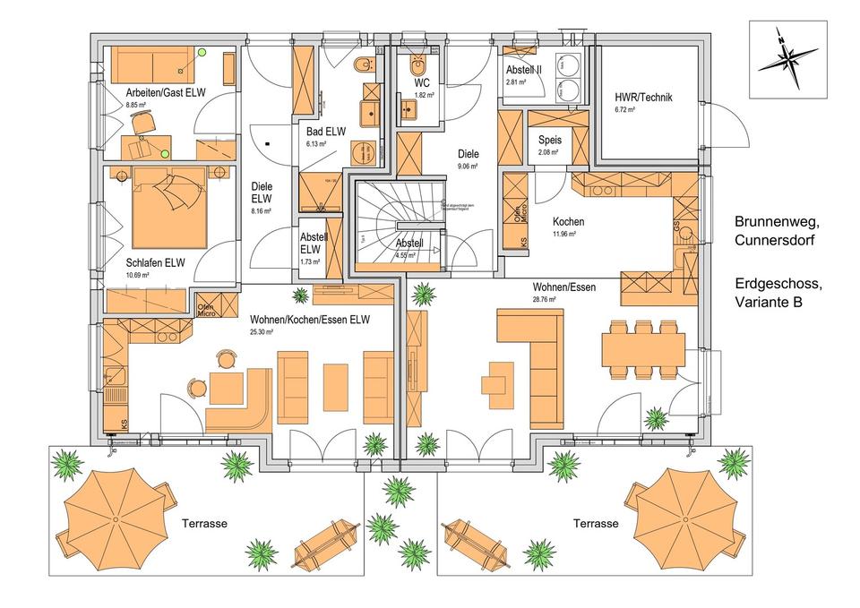 Um die Betriebskosten gering zu halten, wurden die Häuser in KfW-40- Effizienz gebaut.