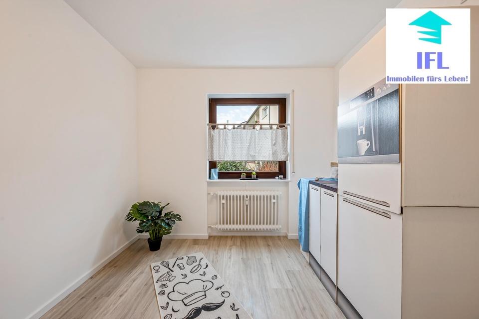 Küche: Die Küche wurde ebenfalls mit komplett neuem Bodenbelag versehen und mit modernen Anschlüssen für Ihre Geräte ausgestattet. Ein gemütlicher Essbereich kann entweder in der Küche, oder im offenen Wohnzimmer mit integriertem Esszimmer platziert werden. Dies können Sie ganz flexibel selbst entscheiden.
