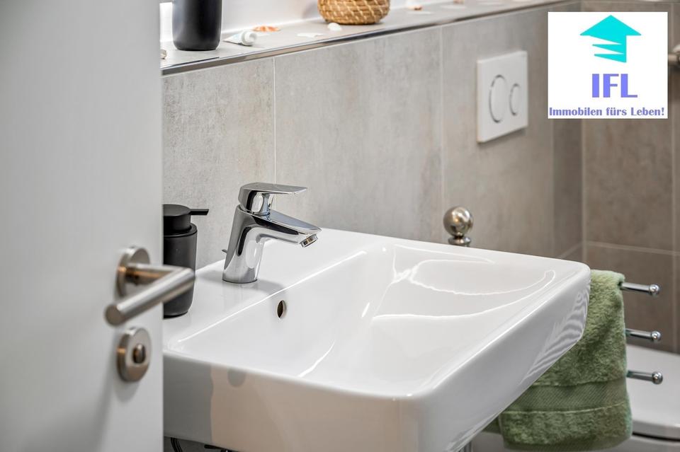 Badezimmer: Das renovierte Bad überzeugt durch eine hochwertige Ausstattung mit modernen Sanitäranlagen, neuen Fliesen und einer praktischen Dusche. Für zusätzlichen Komfort sorgen neue Armaturen und ein Waschmaschinenanschluss. Auch hier wurde an Alles gedacht und ausschließlich hochwertigste Materialien verbaut! Außerdem handelt es sich hierbei um ein Tageslichtbad mit Fenster.