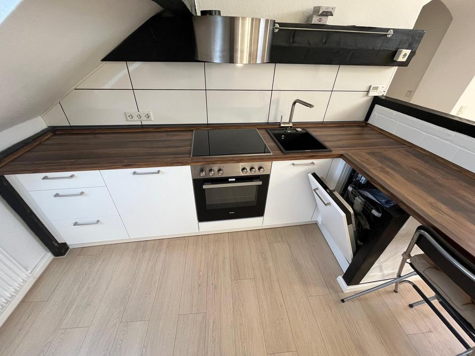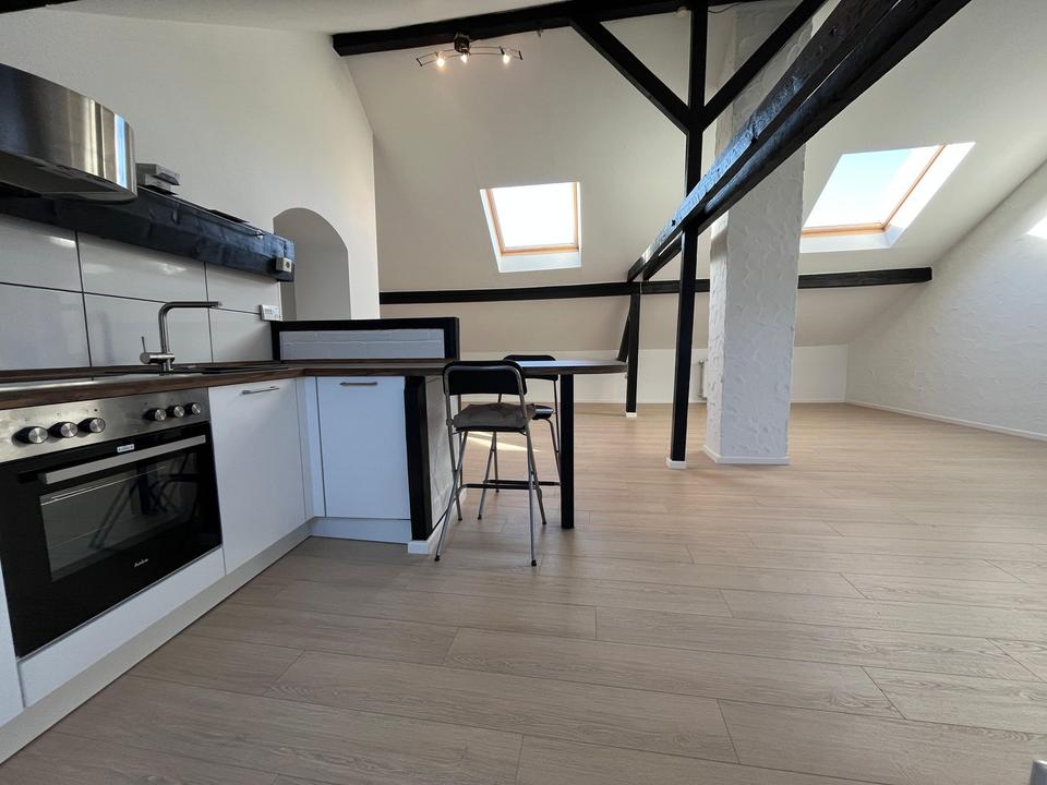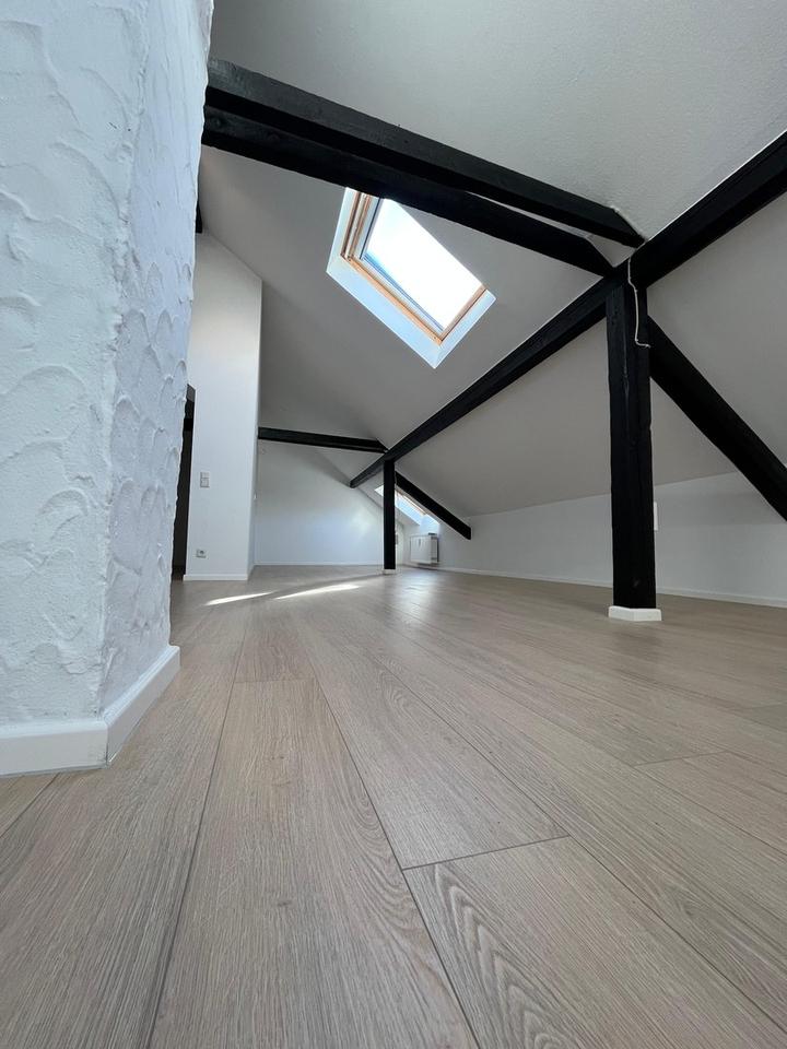Die Wohnung ist frisch gestrichen und verfügt über einen neuen Laminatboden. Besonderes Highlight sind die charmanten sichtbaren Holzbalken im Wohnraum, die der Wohnung einen einzigartigen Charakter verleihen.
