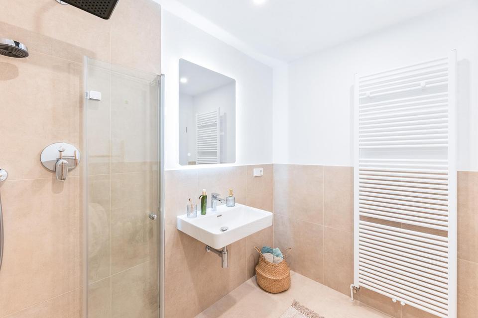 – Modernisiertes Bad mit bodengleicher Dusche & Glasabtrennung