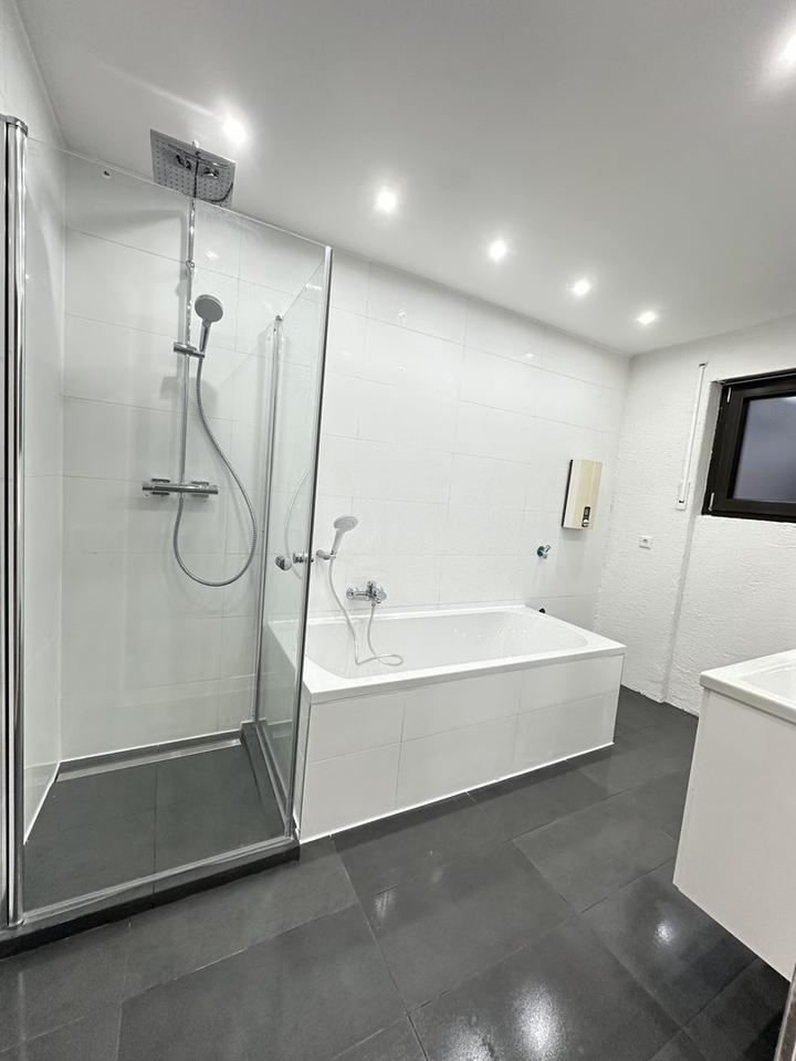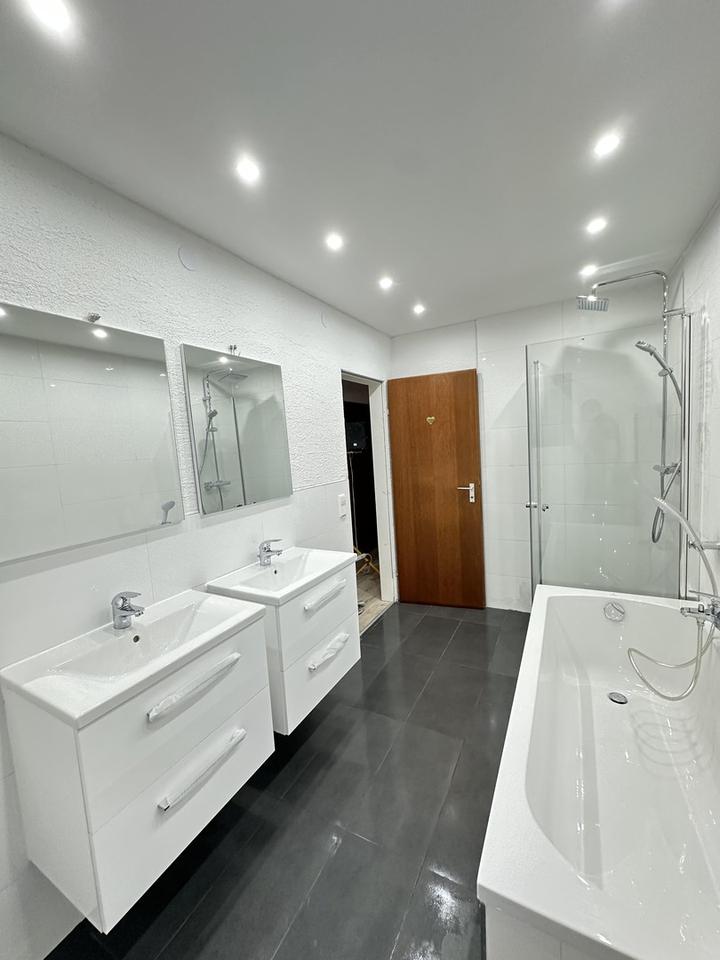 – Gehobenes Tageslichbad mit Dusche & Badewanne &2x Waschtische mit Unterschränke, Regendusche & Waschmaschinenanschluss