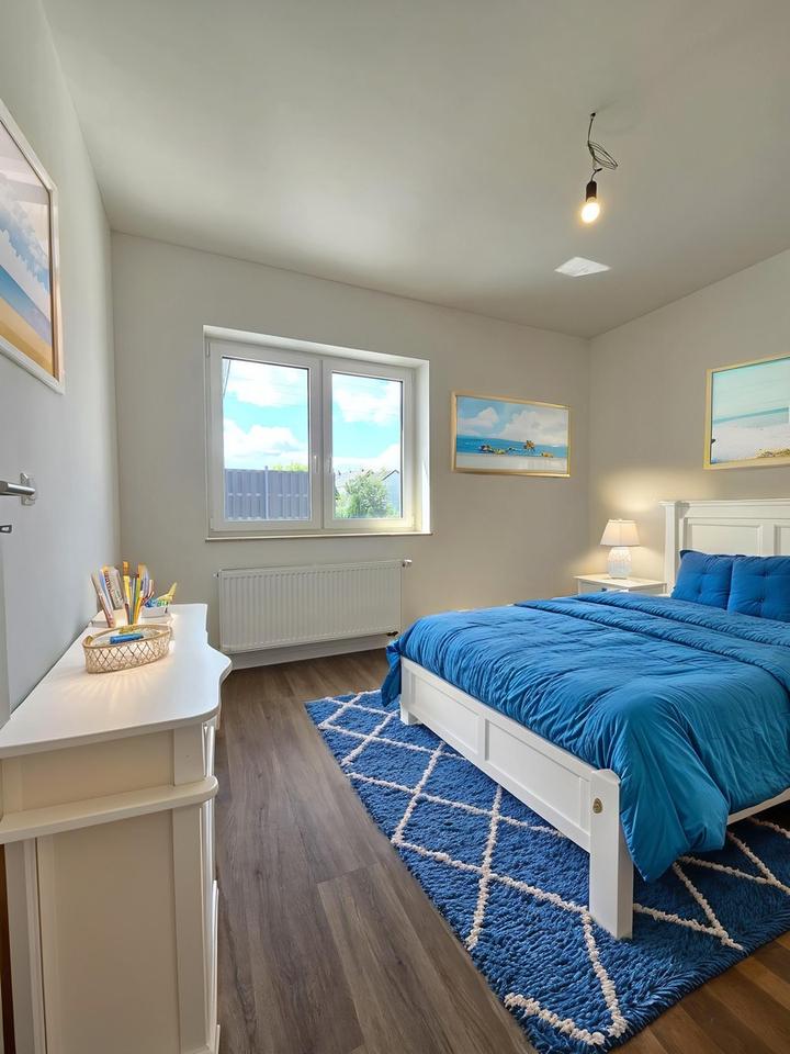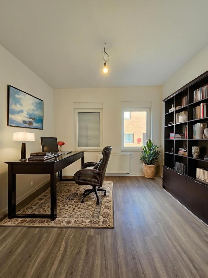 Schon beim Betreten über den einladenden Eingangsbereich spürt man die helle, offene Atmosphäre. Die großzügige Küche bietet genug Platz für kreative Kochideen und einen direkten Zugang zur Terrasse – perfekt, um den Tag im Freien zu beginnen oder ausklingen zu lassen. Ein angrenzendes Büro oder Gästezimmer sorgt für flexible Nutzungsmöglichkeiten.