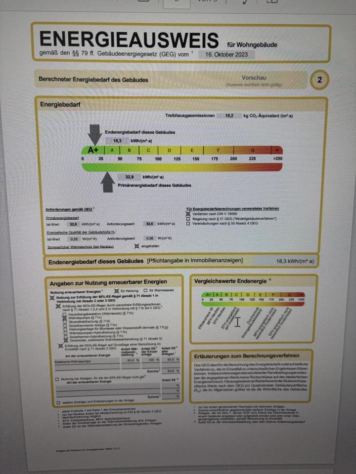 Tolle 3-Zimmer Wohnungen in Energieeffizientem KFW55 Haus, Fußbodenheizung, zentrale Luft-Wärmepumpe, kontrollierte Wohnraumlüftung durch dezentrale in den Wohnungen installierte, moderne Einbauküchen in Hochglanz weiß, ebenerdige Duschen, moderne Betonfliesenoptik in Format 30x60cm, 3-fach Fensterverglasung der Firma WERU (innen und außen weiß), elektrische Rolladensysteme, elektrische Bad-/Handtuchheizkörper, WCs mit Softclose System, Waschmaschinen- und Trockneranschlüsse in Masterbad, Fliesenspiegel in Bädern 1,20m hoch außer Dusche (deckenhoch) mit modernen weiß-matten Fliesen (30×60) ausgestattet, alle Innentüren in Röhrenspankerntüren in CPL Ausführung weiß, Ganzglasduschabtrennungen, Alle Wohnungen mit Malervlies und in weiß 2x gestrichen. Alle Räume sowie sind mit modernen LED Leuchten ausgestattet. Die Bäder 70cm breiten Spiegel mit integriertem dimmbarem Licht (kalt/weiss). Moderne Einbauküchen in Lacklaminat weiss hochglanz, Griffe Edelstahloptik metall, Vollauszüge mit Dämpfung, Arbeitsplatte und Spritzschutz in stylischer Betonoptik, Unterschränke mit Auszügen, Besteckeinsatz, Abfallsammler, Einbauspüle inkl. Armatur, Geschirrspüler, stand frei stehender großer Kühl-Gefrierkombination in Edelstahloptik, moderne schwarze Wand Abzugshaube, Giro Unterbau- Nischenleuchten, Glaskeramik Kochfeld, Einbau-Backofen.