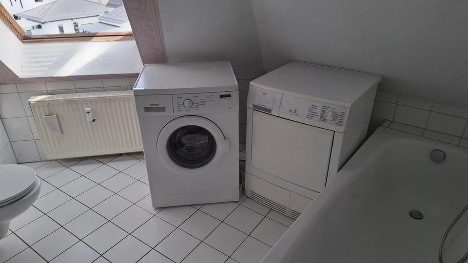 Das Vollbad verfügt über ausreichenden Stellplatz und Anschluss für die bereits vorhandene Waschmaschine und Wäschetrockner.