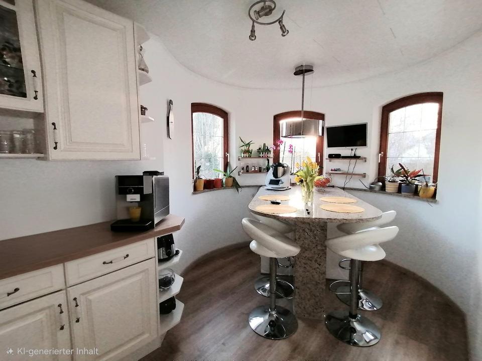 Die Küche ist komplett mit einer Markenküche von Nobilia möbliert, kompl. mit allen Geräten und Arbeitsplatten aus Granit. Ein weiterer Raum neben der Küche beinhaltet eine kleine Frühstücks-oder Kochecke mit Inseltisch aus Granit.