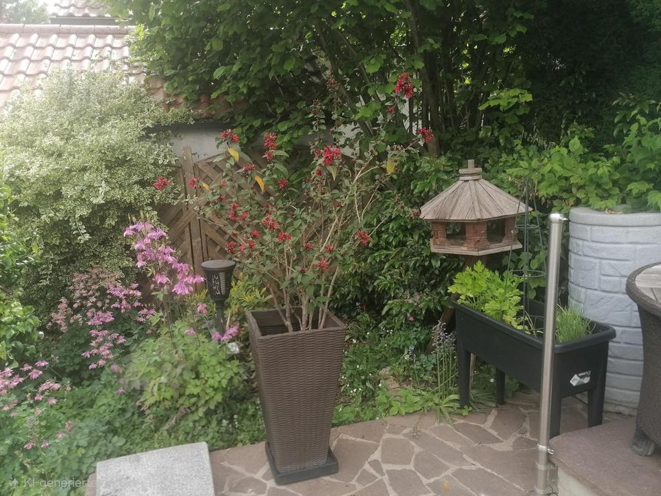 Im großen Garten befindet sich ein Kunststoffschuppen und ein kleinerer Schuppen für das Poolequipment für den neu überdachten und erneuerten 8 x 4 m Pool. Die grosse Garage verfügt über ein elektronisches Tor und ist auch über die Wohnung erreichbar, praktisch für den Einkauf. Von der Garage kommt man in de Garten und von der dortigen Aussentreppe in den eig. Keller. Ein weiterer Zugang besteht über den Hausaufgang, dort ist auch ein gemeinschaftlicher Waschmaschinenraum.