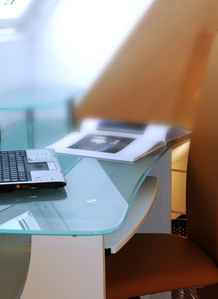 Auf der Galerie gibt es einen Schreibtisch mit Bürostuhl.
