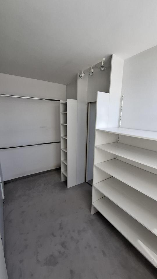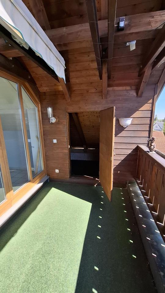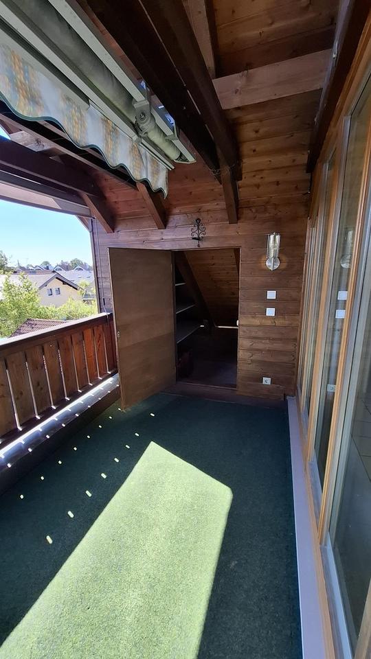 Die Wohnung verfügt über einen großen Balkon der links und rechts zwei Abseiten besitzt, die für zusätzlichen Stauraum sorgen.