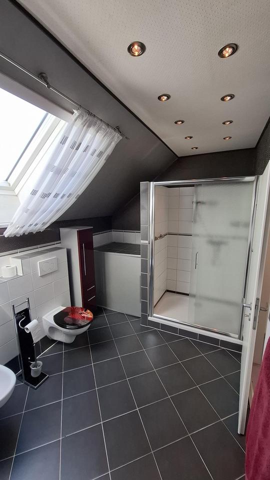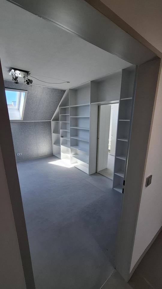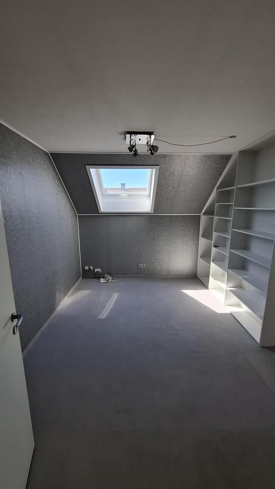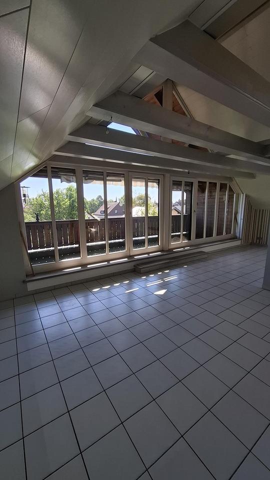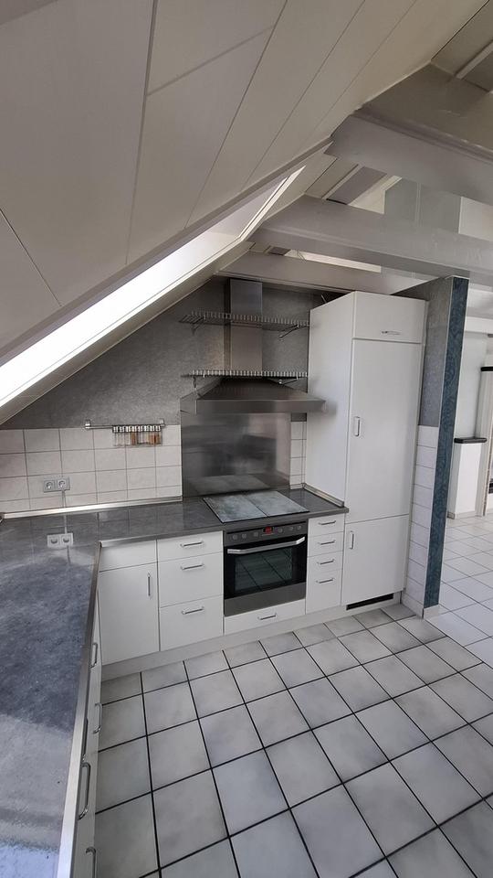 Es handelt sich um eine große und exklusive Dachgeschoss Wohnung die sich über die Gesamte Fläche eines Mehrfamilienhauses erstreckt.