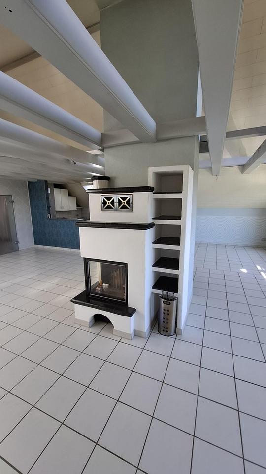 Ebenfalls befindet sich im großen Wohnraum eine Fußbodenheizung und ein großer Kamin.