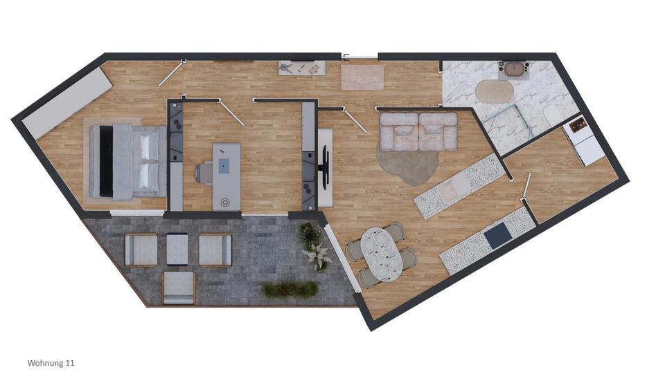 Die ca. 87 m² große Wohnung verfügt über ein Schlafzimmer, ein Büro, eine großzügige Wohnküche, ein Badezimmer, einen praktischen Abstellraum sowie einen sonnigen Balkon. Fußbodenheizung, Aufzug und ein eigener Stellplatz runden das komfortable Gesamtpaket ab.