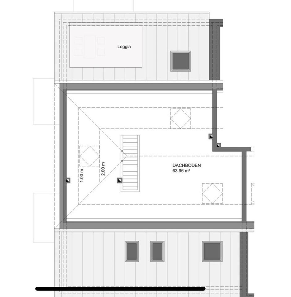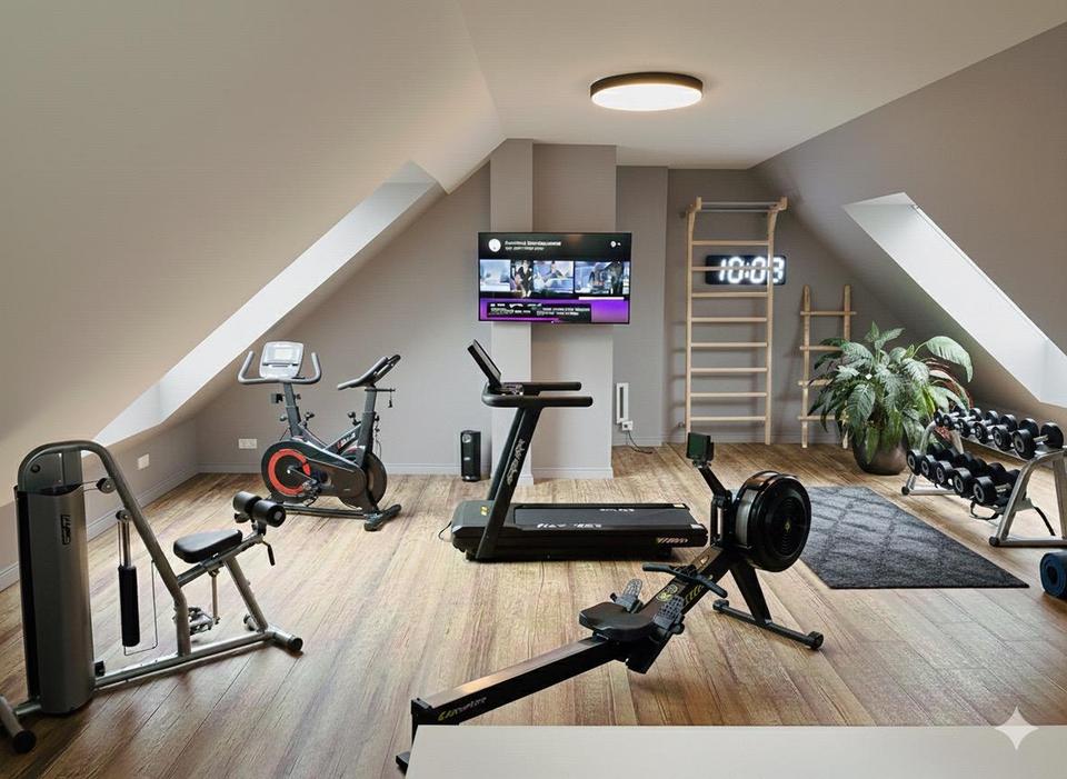 Über eine offen gestaltete Treppe erreichen Sie das Obergeschoss der Wohnung. Hier befindet sich ein rund 60 m² großes, offenes Studio. Dieser Bereich eignet sich gut für Homeoffice, Arbeiten, Hobby oder als private Rückzugszone. Die offene Bauweise verleiht der Wohnung einen loftartigen Charakter.