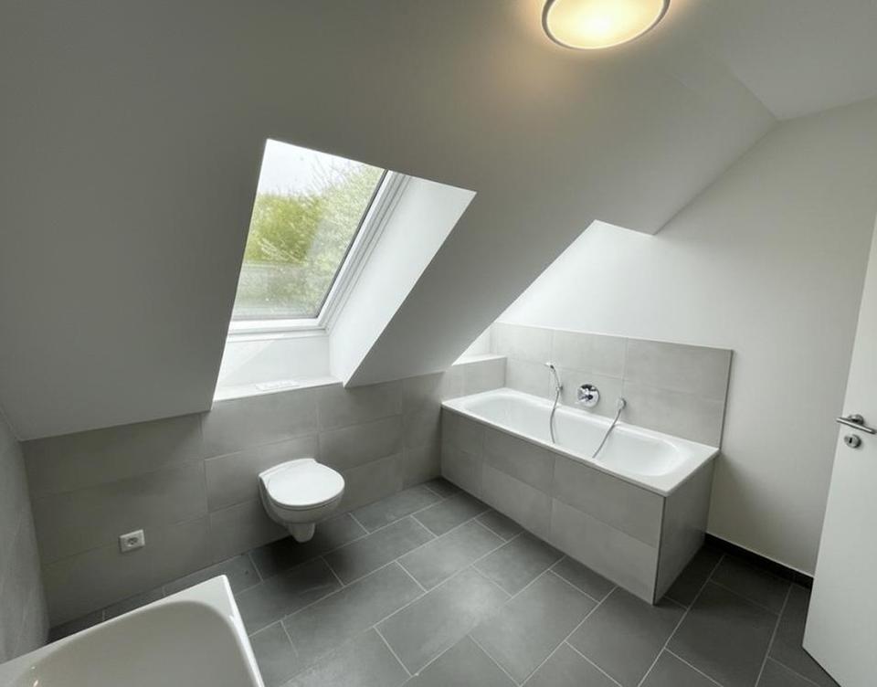 Der Grundriss ist klar strukturiert und großzügig ausgelegt. Im unteren Geschoss stehen Ihnen zwei abgeschlossene Zimmer, ein großer offener Wohn-/Essbereich mit Küche, ein modernes, helles Badezimmer mit Badewanne sowie ein zweites Bad mit Dusche zur Verfügung. Große Fensterflächen sorgen in allen Räumen für sehr gute Belichtung.