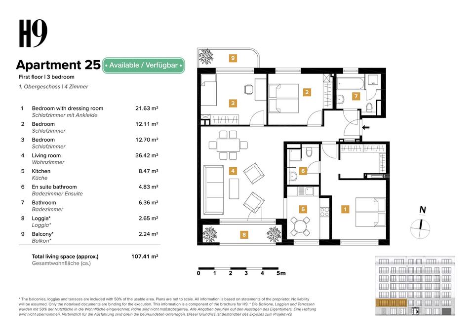•Durchdachter Grundriss: Die Gesamtwohnfläche beträgt ca. 107,41 m² und überzeugt durch ein offenes, modernes Wohngefühl .